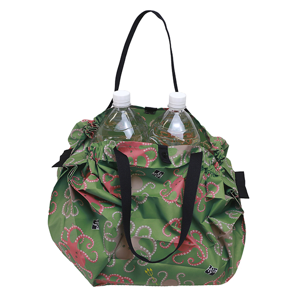 Mサイズは、エコバッグにある程度の容量を求める方に。買い物かご半分程度の荷物が入ります。持ち手は肩にかかる長さ。少し重くても目的地までラクに運べます。荷物の重さで巾着のように袋口が閉じるので、中身が見えにくいのもポイントです。毎日の鞄に入れて運ぶほか、車内に常備するのもおすすめです。
