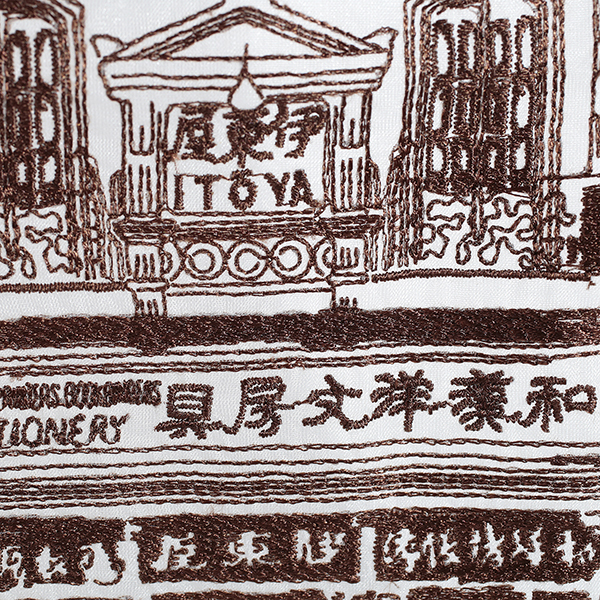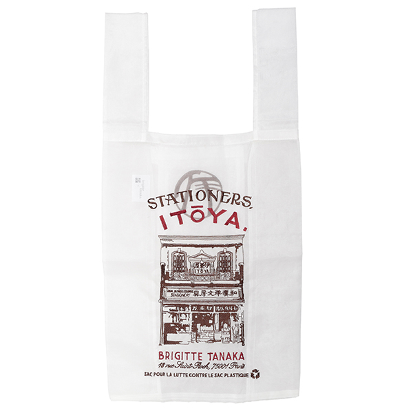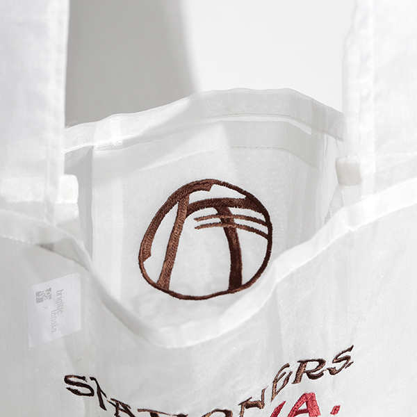 買い物やお出かけにお使いいただけるオーガンジーバッグには、1904年に創業した伊東屋の店舗を刺繍しています。