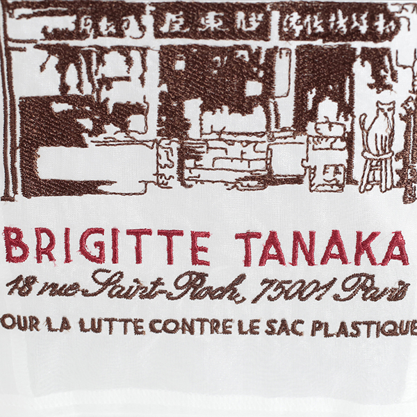 製品には「SAC POUR LA LUTTE CONTRE LE SAC PLASTIQUE(プラスチックバッグに対する戦い)」という言葉が刺繍されています。