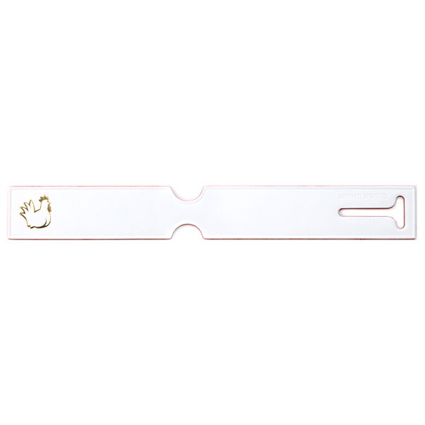 耐久性のあるボンデッドレザーファイバに、トリのシルエットを箔押ししたバゲージタグ。