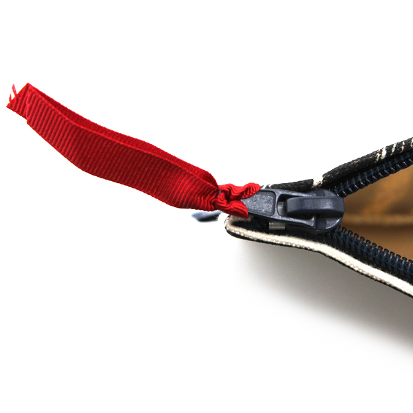 10オンスコットンキャンバスにハンドスクリーンプリント 赤リボンスライダー付きネイビーファスナー まちなし  裏地なし