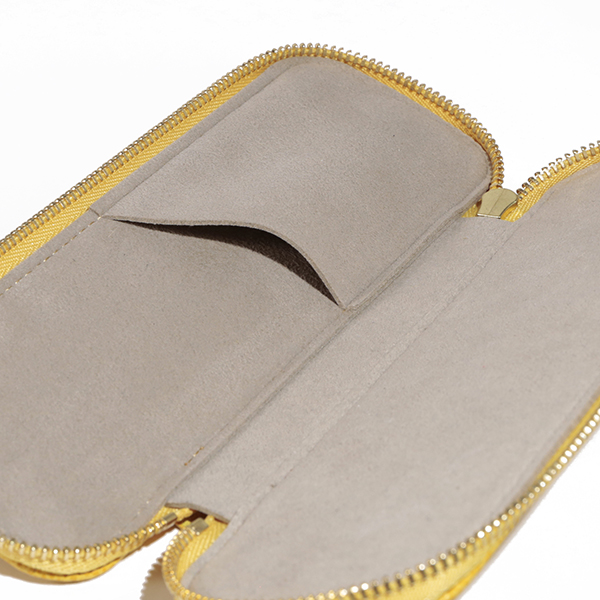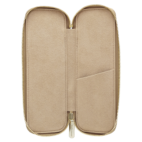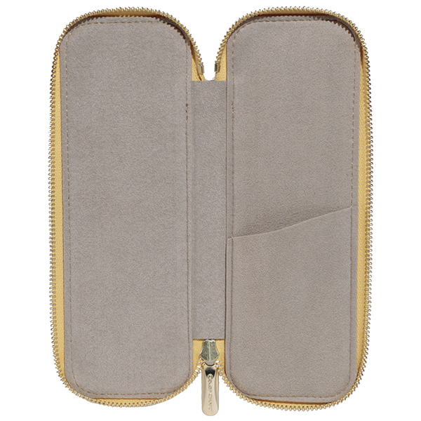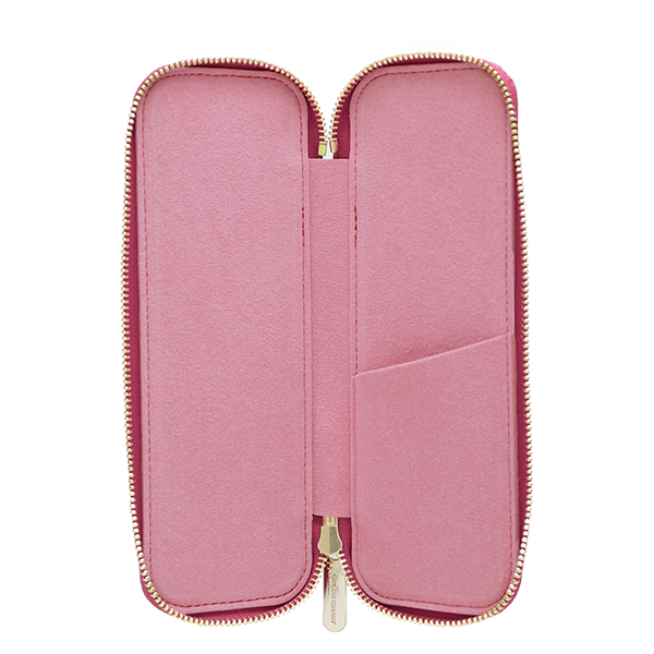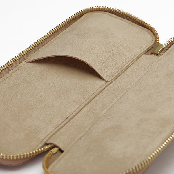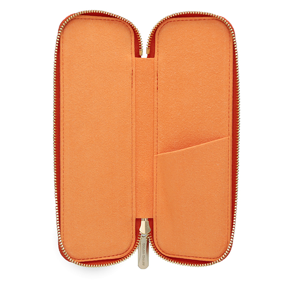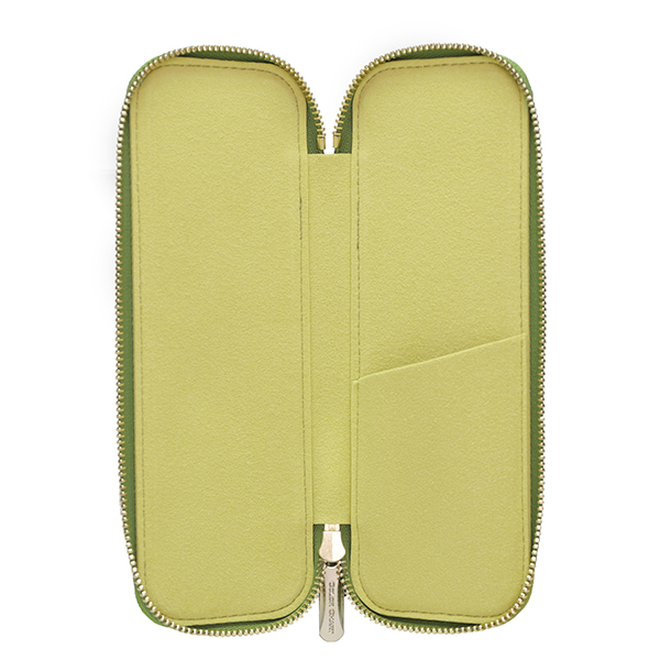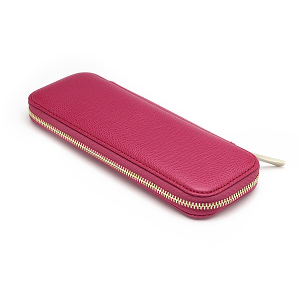 毎日使う筆記具をコンパクトに運ぶ、スリムなペンケースです。豊かな色彩のレザーにきらりと輝くメタルパーツをあわせ、美しく仕立てました。上質なケースが、使う姿をスマートに彩ります。