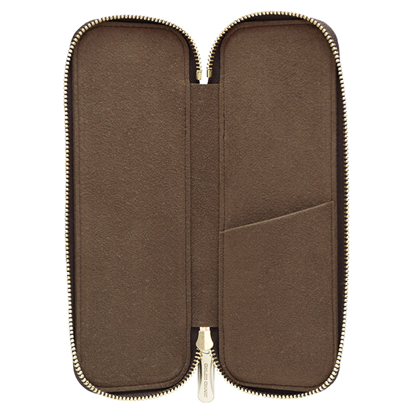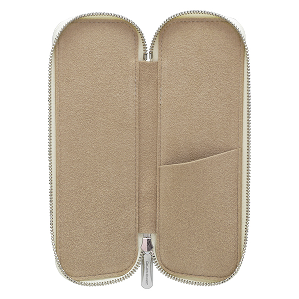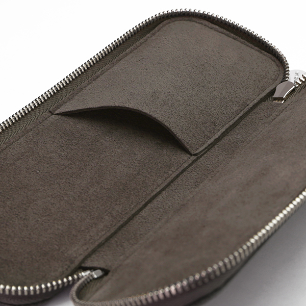内装はペンポケット付き。収めた筆記具が一覧できるので、目的のものをさっと手に取れます。生地はなめらかな質感のウルトラスエード(R)。筆記具に優しく触れるつくりです。