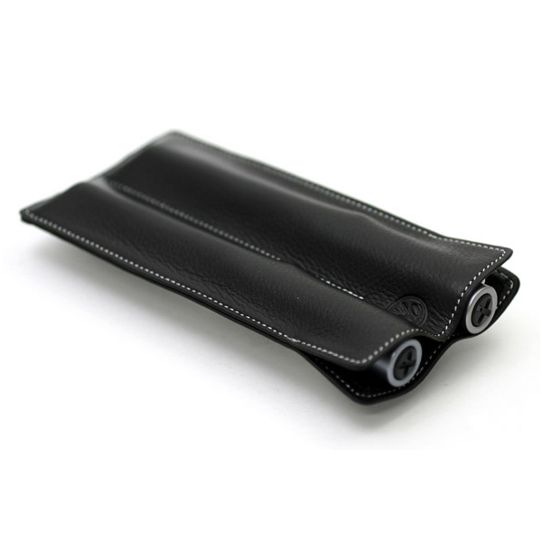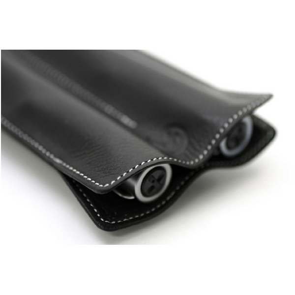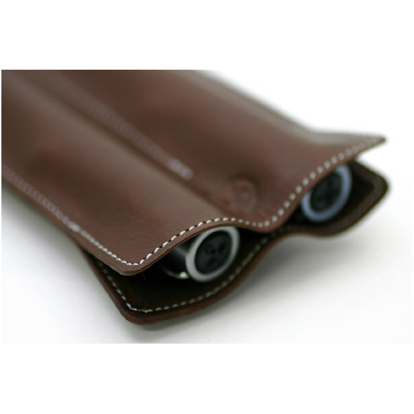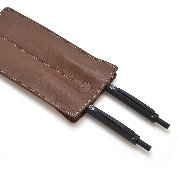”手にした瞬間の手触り”にとことんこだわって作られた、オイルキップ素材のシリーズです。北米産の上質な中牛皮のみを用い、肌目の細やかさを活かした染色を施しました。ふっくらとした革質、しっとりした手触り、使い込むほどに味わいの出てくる商品です。モンブラン149相当の太さ・長さの筆記具が2本入ります。内側には、非常に軽く、シワになりにくく型くずれもしない人工皮革を使用しています。 大切なペンを、ふっくらとした革質の2本差しにお入れして、ご愛用いただけます。