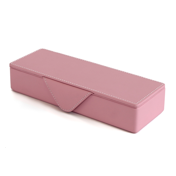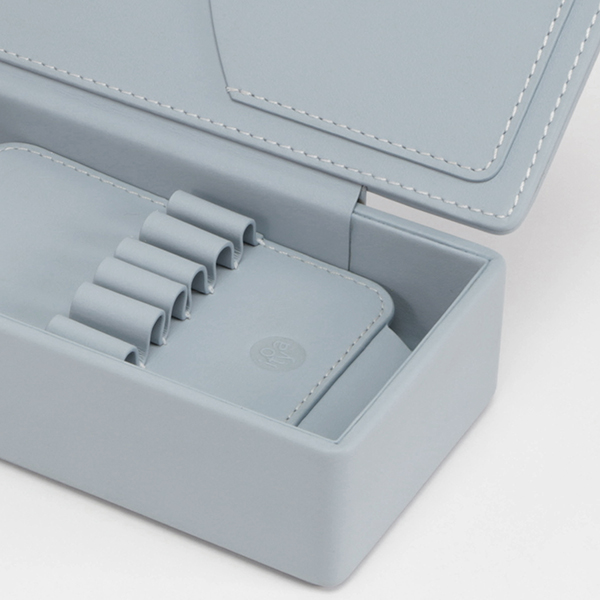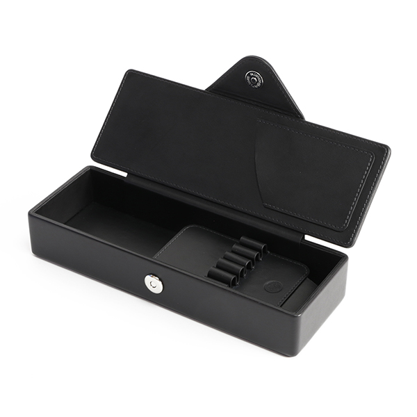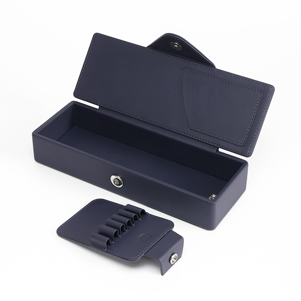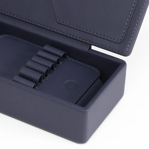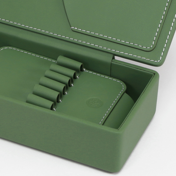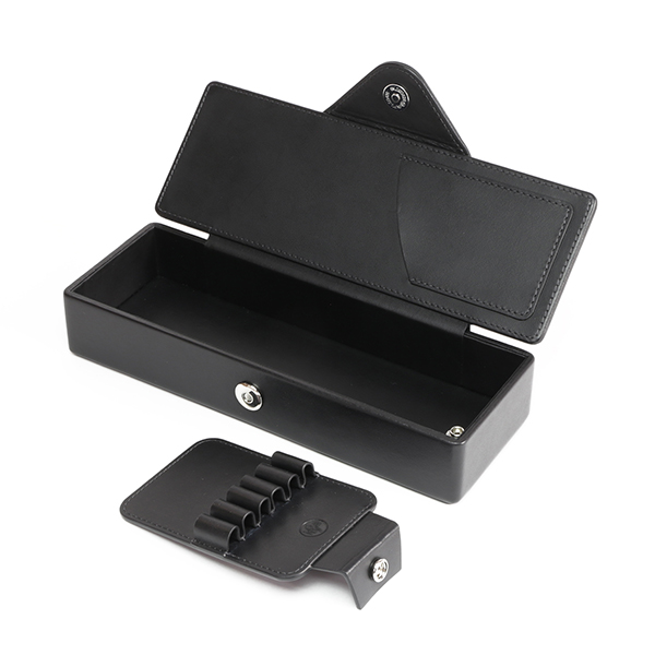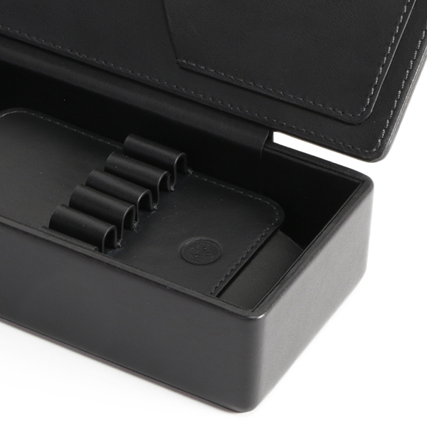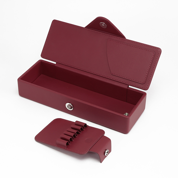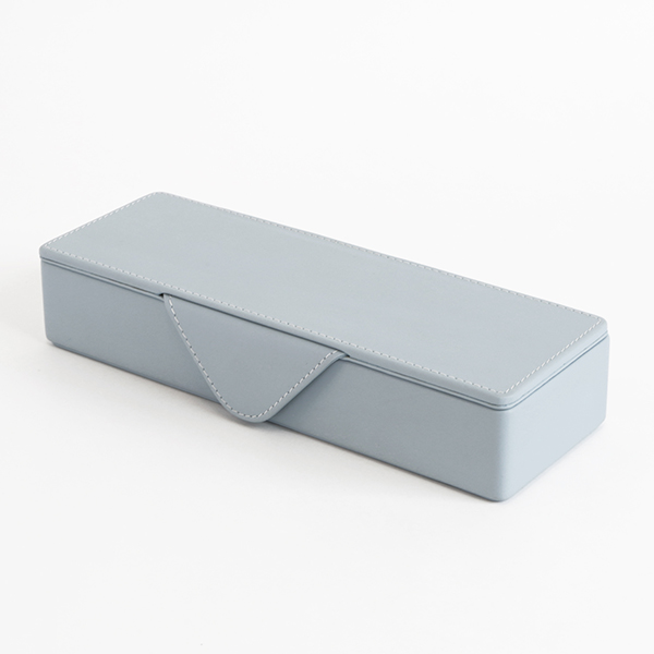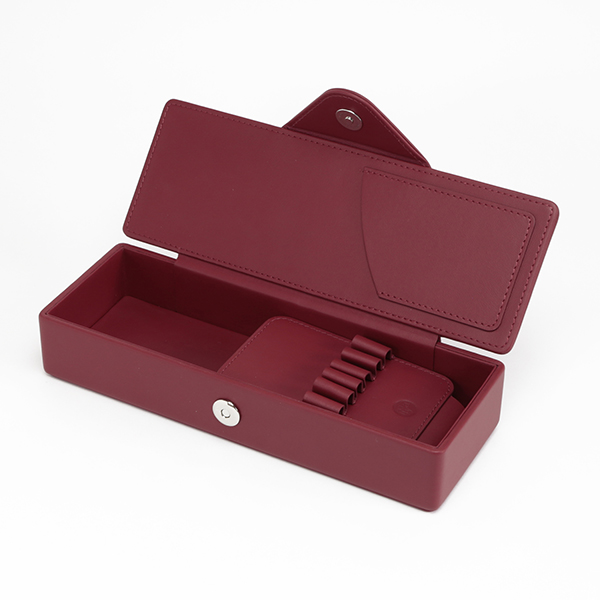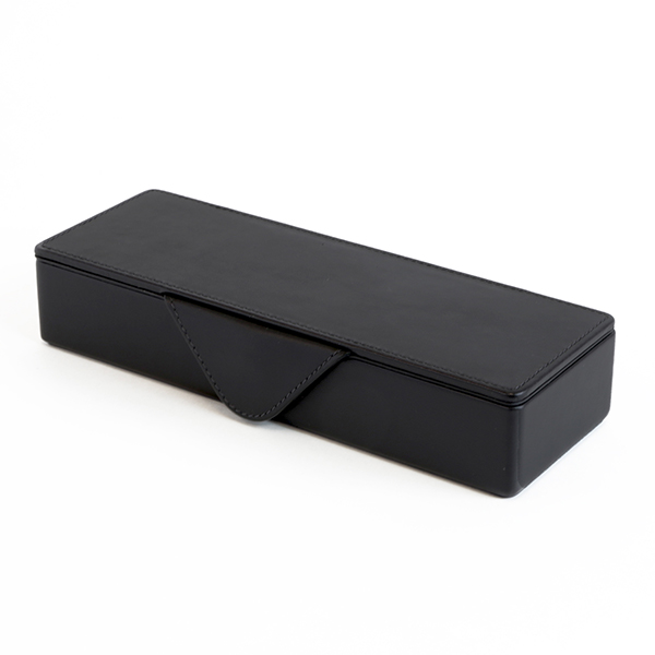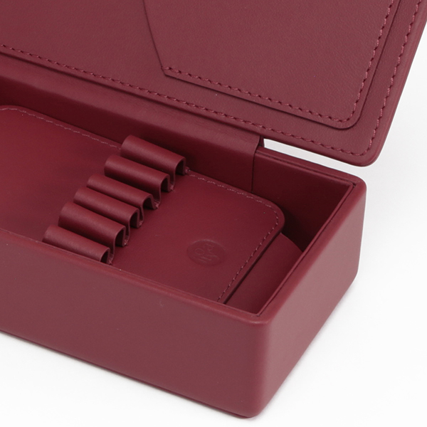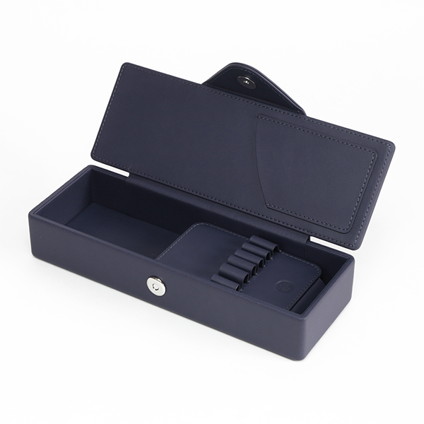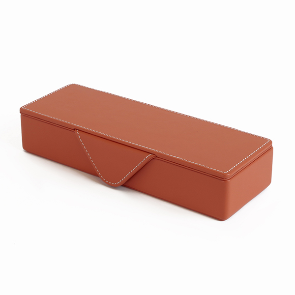 筆箱の角や天面を直線的に整え、すっきりした印象に。内側まで革張りを施した上質な道具箱のような佇まいになりました。
