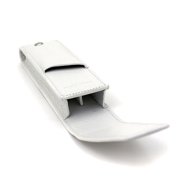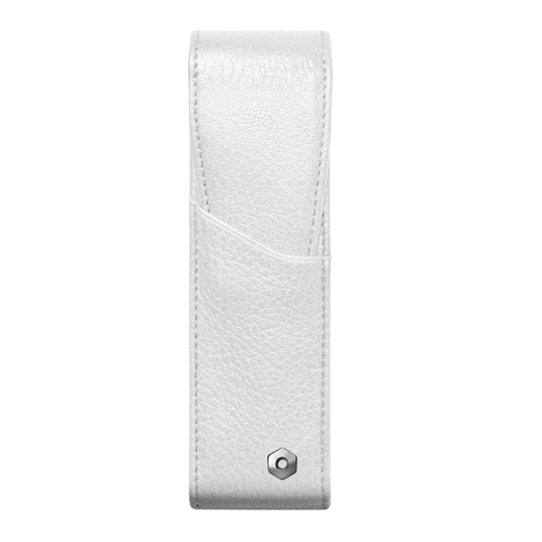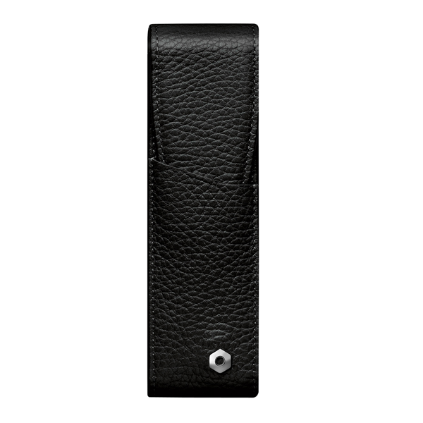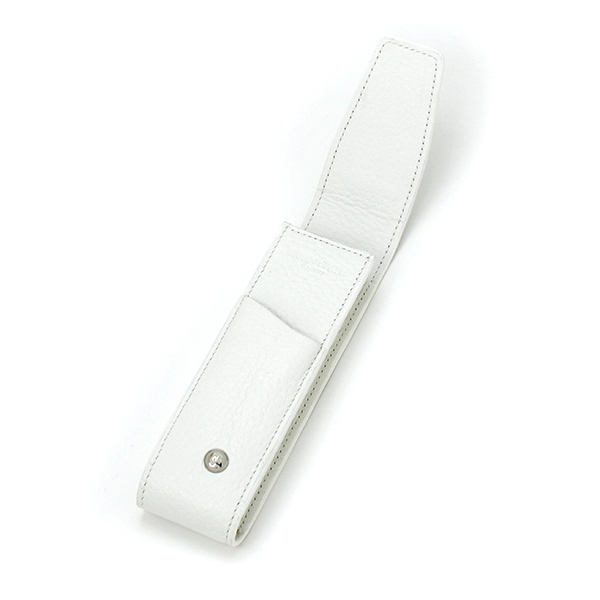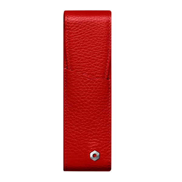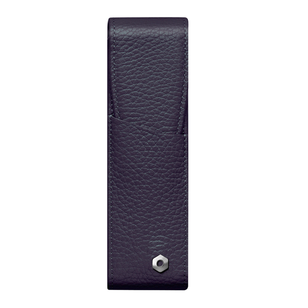 二本差しのペンケースで表面はカーフスキン、内側のライナーはジャガード織、メタル部分はパラジュームコート仕上げでペンがぶつからないよう、中仕切りがあります。サイズは40X150mmです。1年間の国際保証書付きです。