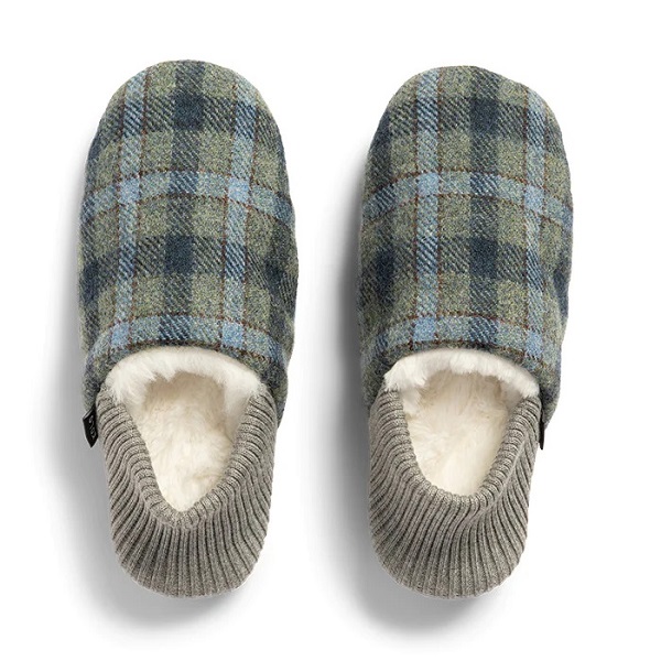 外装はスコットランド産ウールのクラシックなツィード、底はスウェードレザーで柔らかく軽い履き心地。