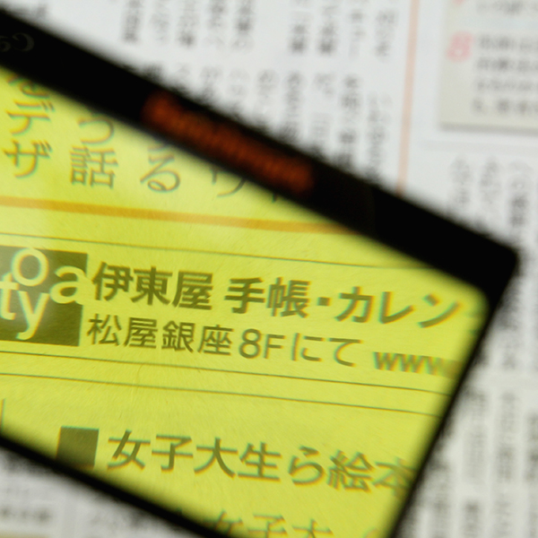 ポケットレンズに新商品が登場しました。黄色のレンズを採用しています。黄色のレンズを通して見る事でチラツキの原因となる青い光を抑え、文字を際立たせます。半透明のケースとセットになっており、ルーペを傷つけずに携帯ができます。お財布やカードケースに常に入れて持ち歩けるのでとても便利です。倍率は約3倍で、レンズ材質はPVC(ポリ塩化ビニル)です。