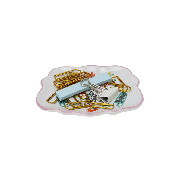 この小さなセラミック製トレイは、デスクの上で散らかりやすいクリップや輪ゴムなど細々したものを纏めるのに最適です。