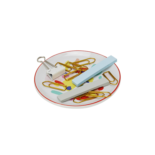 この小さなセラミック製トレイは、デスクの上で散らかりやすいクリップや輪ゴムなど細々したものを纏めるのに最適です。