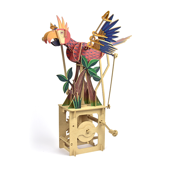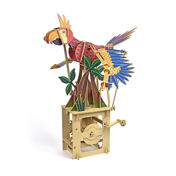 昔懐かしい、手動式組立からくり装置(オートマタ)の登場です。 ハンドルを回すと歯車が回転し、愛嬌のあるキャラクター達が動き出します。