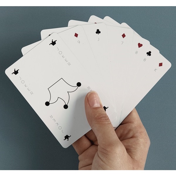 シンボルを白抜き線画のスートまたは王冠だけ描いた、大人シンプルなトランプカードセット。
