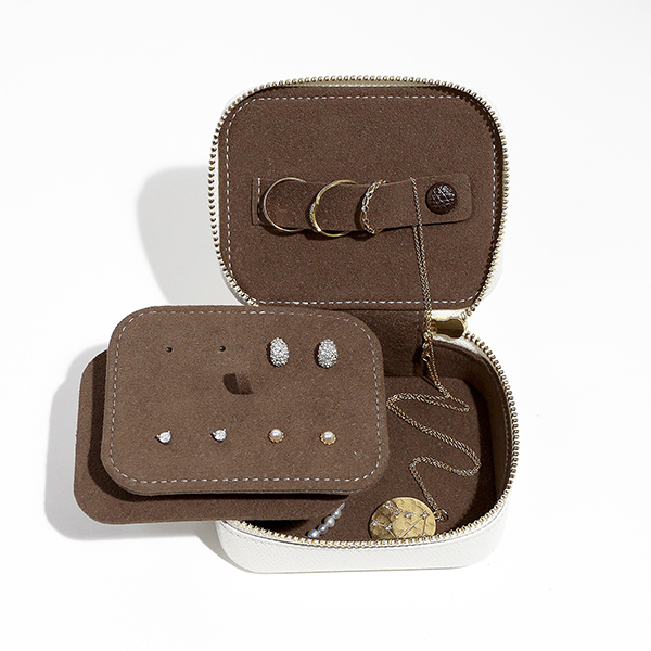 洋服にあわせてアクセサリーを選びたい旅先のほか、例えばジムで一時的にはずすとき、発表会でアクセサリーを着替えるときなど日々の外出でも活躍します。様々な外出先へ、お気に入りを運ぶケースです。