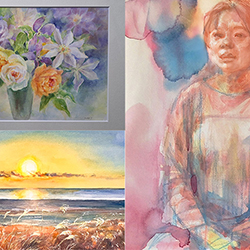 主に風景や草花を透明水彩絵具や水彩色鉛筆で描き、グループ展等で発表。