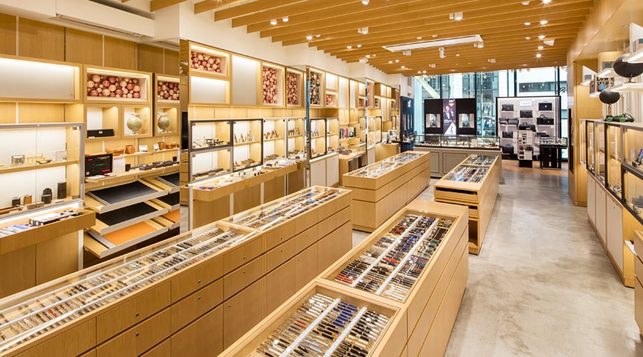 クラシカルな定番品はもちろんのこと、蒔絵がほどこされた万年筆、限定品など約2,000本取り揃え、みなさまのお越しをお待ちしております。