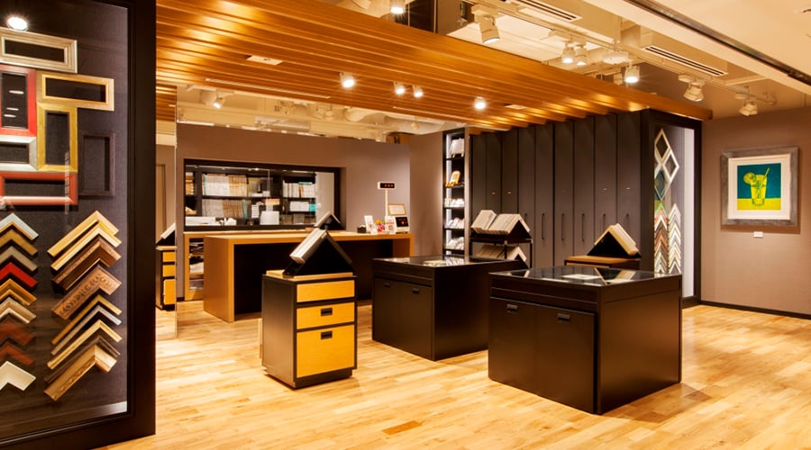 約1500種類のフレームサンプルから経験豊富なスタッフがお客様とじっくりお話をし、額装を仕上げてゆきます。