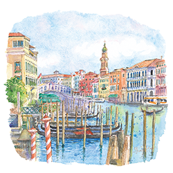「薔薇色のサンタルチア」では、毬月氏が旅したベネツィアでのゴンドラ体験をもとにした心象風景を表現。
