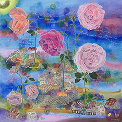 透明水彩や、アクリル絵の具、墨などを用いた多様な表現で描かれた作品は、どれも美しく心が躍るものばかりです。