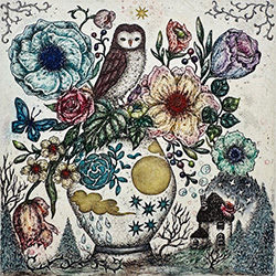 透明水彩絵の具・アクリル・墨・和紙などミックスメディアで制作