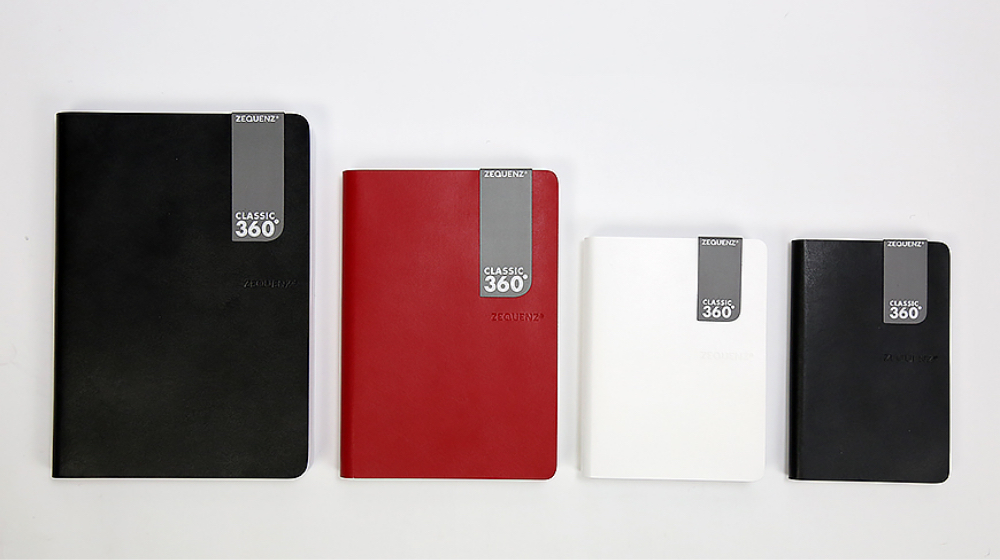 ページを360°開くことができる、驚異的な柔軟性を持つノート「ジークエンス360°」。