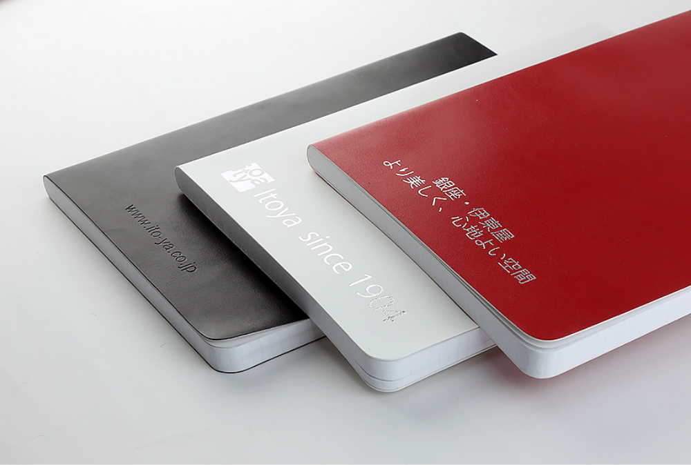 本革をイメージした高級感のある用紙を使用した表紙に、箔押しプリントが上品な輝きを放ちます。