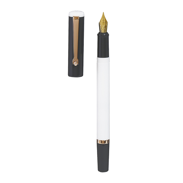 ホワイトとダークグレーをあわせたモノトーンの軸色で、ほどよい緊張感ある佇まいの1本です。