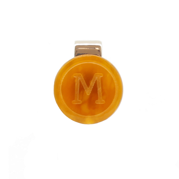 軸色は、ダークグレーとマーブル模様のオレンジをあわせました。レジンの奥から光を受けて輝くマーブル模様を楽しめます。