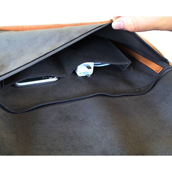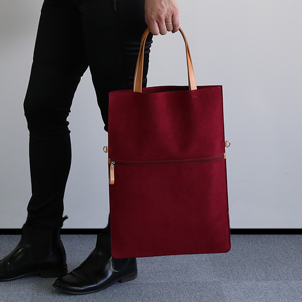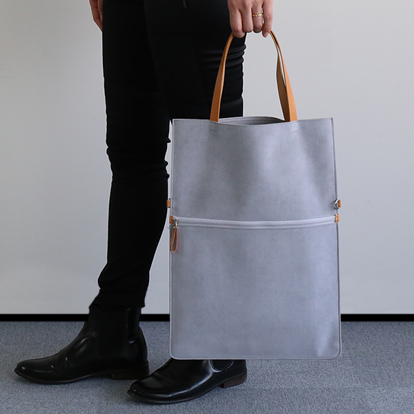 本体には軽く丈夫な素材を用い、身軽に持ち運べる軽量な仕上がり。上質なスエードのような質感も魅力です。