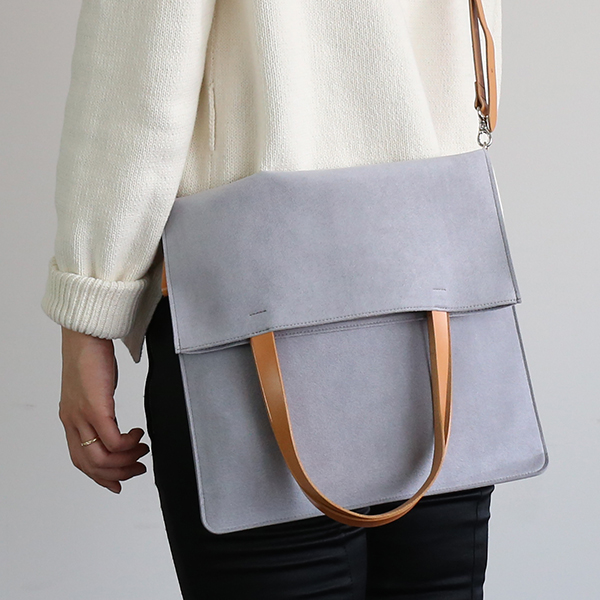 アクティブに動くときは斜めがけのショルダーとして、A4書類を入れるときは手持ちのトートとして。マチがなくても、お財布・スマートフォン・ハンカチなどの必携品に加え、タブレットや本も入る、充分な収納力のあるバッグです。パソコンを運ぶ、サブバッグとしても。