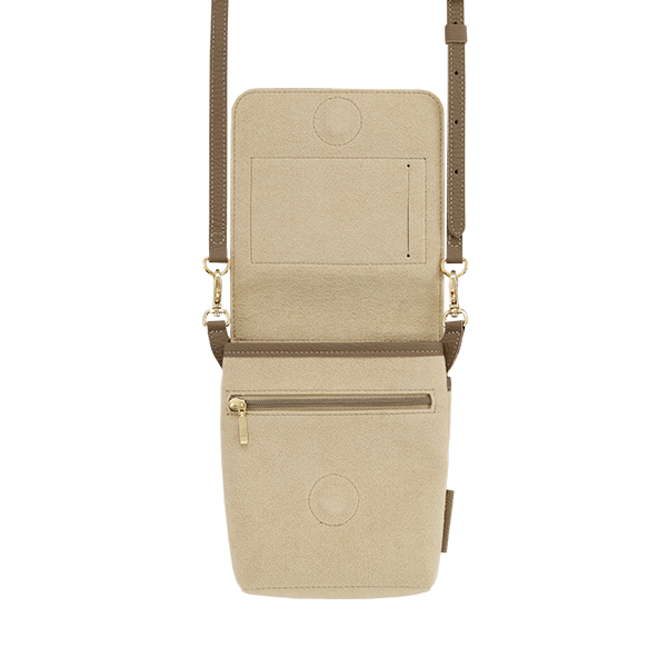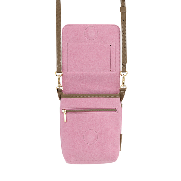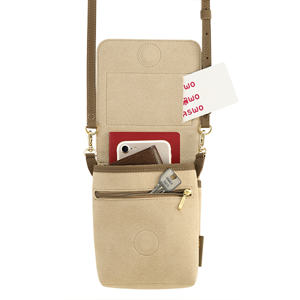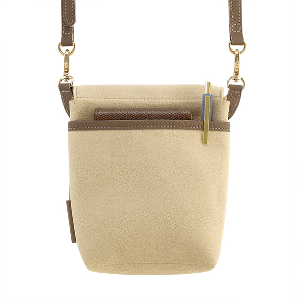 たとえば、空港や旅先で、スマートフォン・コンパクトウォレット・IC・カード乗車券・パスポートの持ち運びに。オフィスで、IDカード・ペン・スマートフォンの持ち運びに。気分転換のウォーキングにスマートフォンと家の鍵、小銭だけを携えて。まるで洋服のポケットのように欠かせない持ち物をまとめ、移動のシーンをよりここちよくします。
