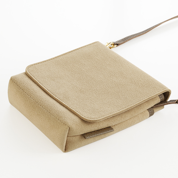 おどろくほどの軽さ、なめらかでやわらかな質感、優れた耐久性をもつウルトラスエード(R)を用い、デイリーユースでもトラベルユースでも快適に使えます。表面のなめらかな質感がながく保たれるよう改良された新タイプを生地に使用しています。(ウルトラスエード(R)は東レ(株)の登録商標です。)