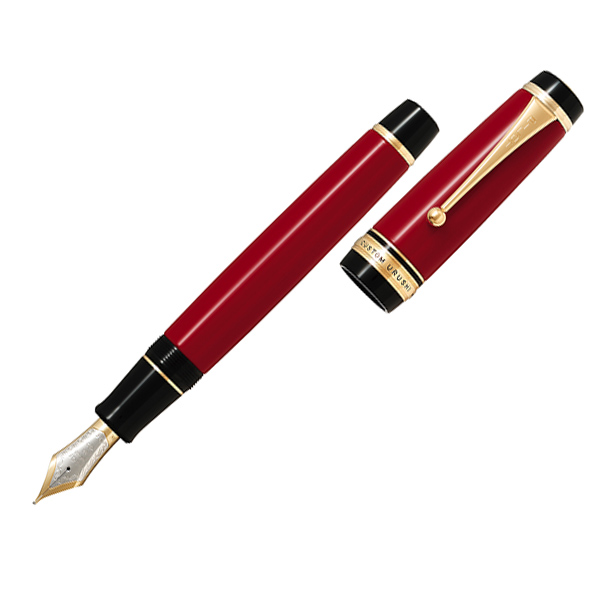 エボナイトに蝋色漆仕上げ(朱漆)をほどこした、ソフトな書き味の大型万年筆。