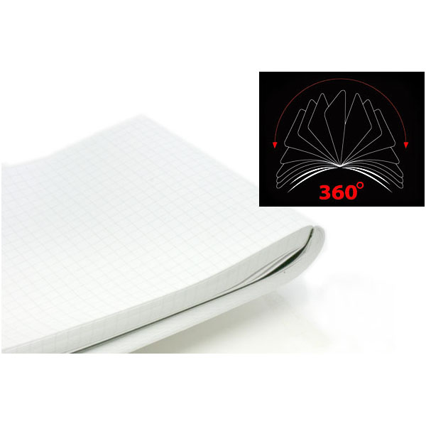 表紙には、上質なポリウレタン(PU)という合成皮革を使用しています。柔軟性が高く、360度開くこと、丸めて持つことを可能にしました。 通常のノートやレポート用紙の接着は、乾燥し次第に硬くなる為簡単に剥がれます。しかしジークエンス360は、硬くならない特別な接着剤を使用していますので、360度折り返しても剥がれおちることがありません。 いつも携帯し、アイデアブックとしてご利用いただいたり、旅行の際にお持ちいただくのに、最適なノートです。マグネットブックマーク付、同じサイズで横罫、方眼が選べます。