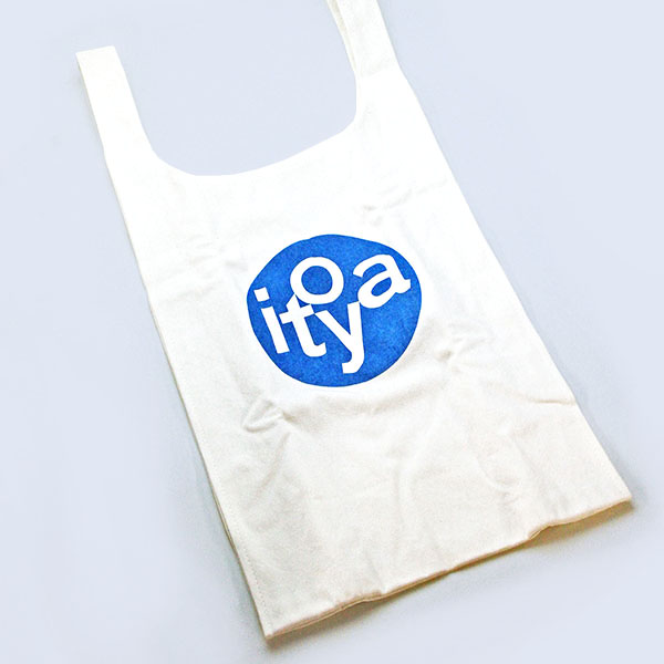 丈夫な帆布生地を使い、生地のつなぎ目をなるべく目立たなくしました。コットン100%の優しい手触りを生かすために表面をコーティングしていません。文房具であれば、A4サイズの厚手ノートが数冊、野菜であればキャベツが丸ごと入るような大容量サイズです。丸型の伊東屋マークでポップな雰囲気のエコバッグ、地球環境のために皆でお使いください。
