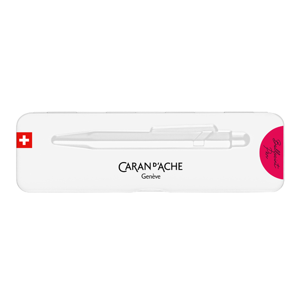 849の型を模したメタル製のケースに包まれたポップラインは、スリムでお洒落なケ-スに1本ずつ収められ、それぞれのケ-スには、中のボ-ルペンに対応した色が半円で印されています。