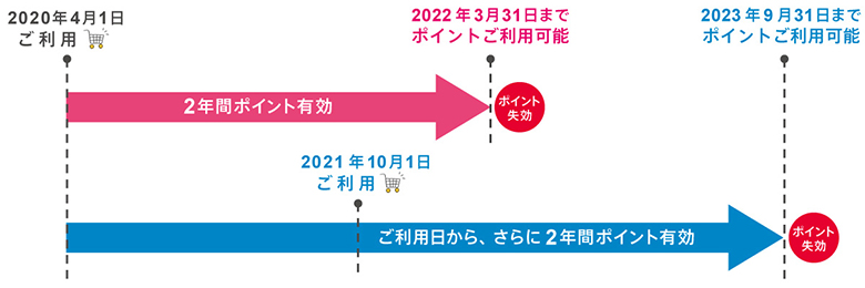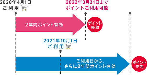 - ・有効期限が過ぎてしまうと(2年間ご利用がなかった場合)、お客様のポイントは失効となりますのでご注意ください。