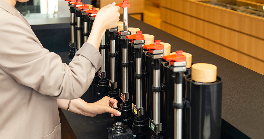 お客様の前でひとつひとつ、ブレンドしてカクテルのようにお作りします。