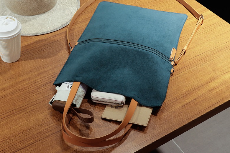 ショルダーからトートに持ち替えれば、バッグが縦に伸びてちょっとしたスペースが生まれます。