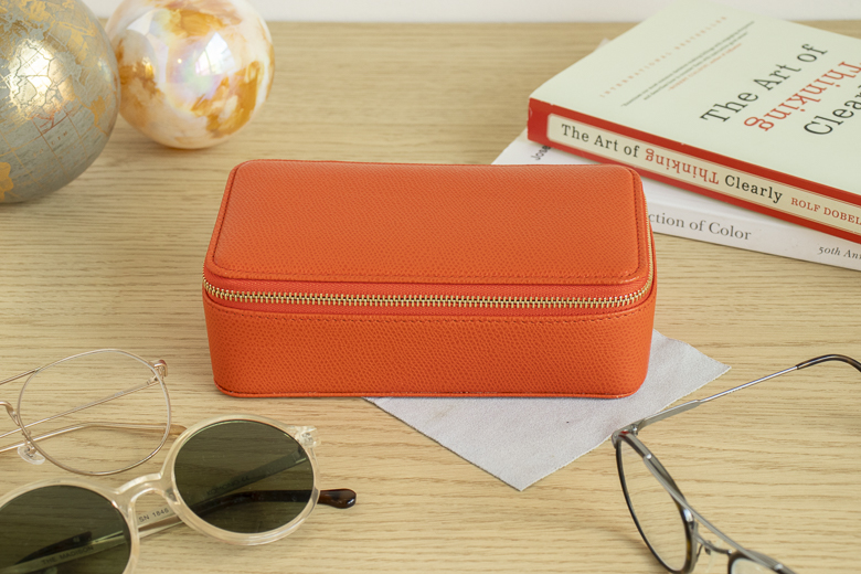 次に紹介するのは「革製メガネケース」。おしゃれが大好きで、メガネをファッションの一部として楽しんでいるスタッフKさん。多彩なコレクションを持っている彼女ならではの視点でご紹介します。