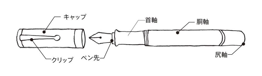 こちらのページでは、万年筆の簡単な仕組みやお手入れ方法を図解でご説明します。