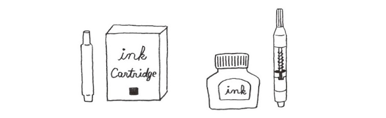 万年筆へのインクの入れかたは、それぞれの万年筆の構造によって異なりますが、大きく「カートリッジ式」と「吸入式」に分かれます。