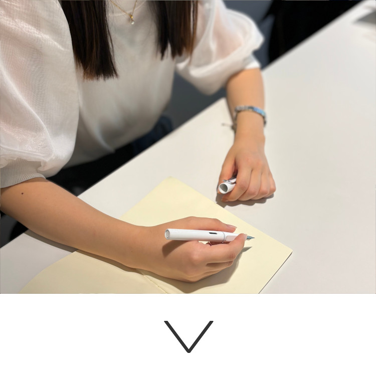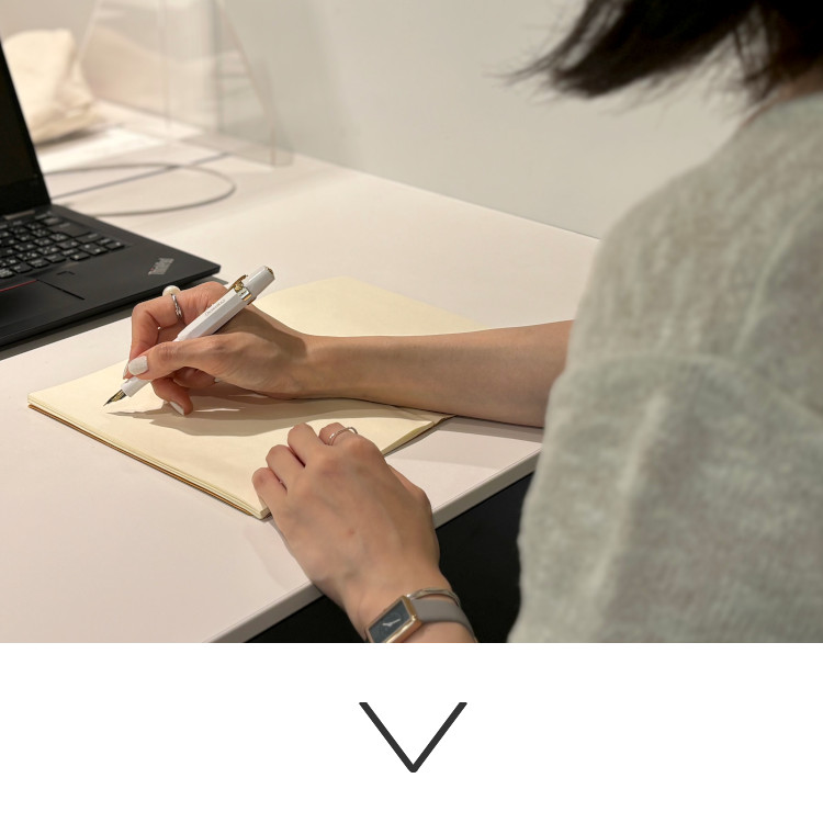 これから初めて万年筆を使おうとしている方にはまずは好きなデザインのものを手にとって、スタッフに相談しながら試筆されることをおすすめしたいです。