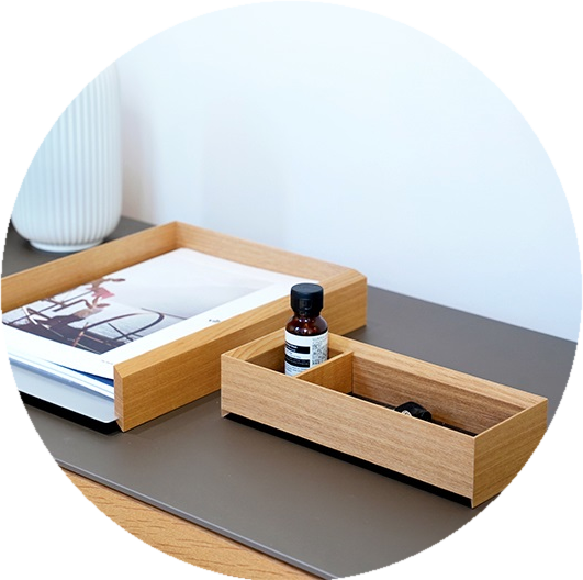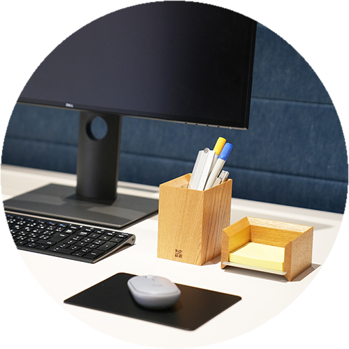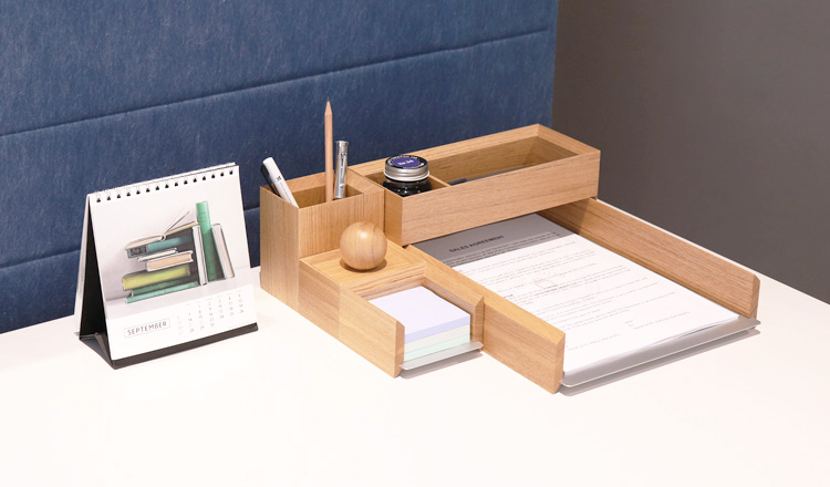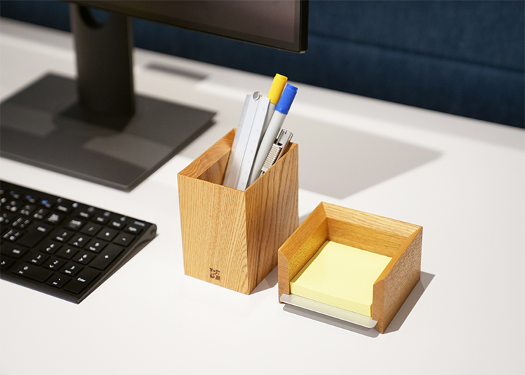 デスクトップステイショナリーのもつナチュラルで軽やかな雰囲気はインテリアとも調和しやすく、ワークシーンだけでなく日常の空間に自然と溶け込みます。