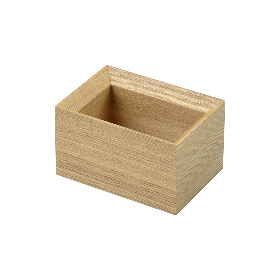 6つのアイテムは横幅、奥行き、高さが揃うようにサイズ設計。また、木の断面を斜めにカットすることで、上下に重ねられるスタッキング構造に。自分のデスクやワークスタイルに合わせて、どのアイテムを組み合わせても美しく整います。
