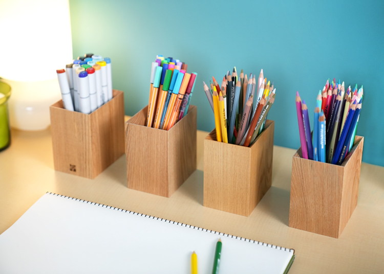 色鉛筆にマーカー、クリエイティブな時間のパートナーは見た目にも賑やかで、色数も沢山揃えたいものばかり。色や形がばらばらのアイテム達でも、同じペンスタンドを使って収納すれば統一感のある心地よいデスクを作り出せます。