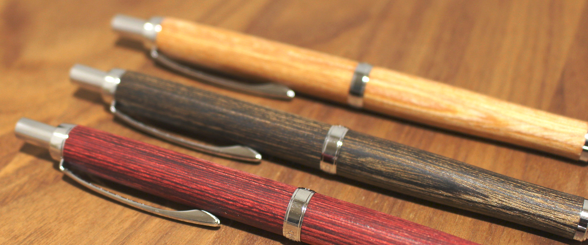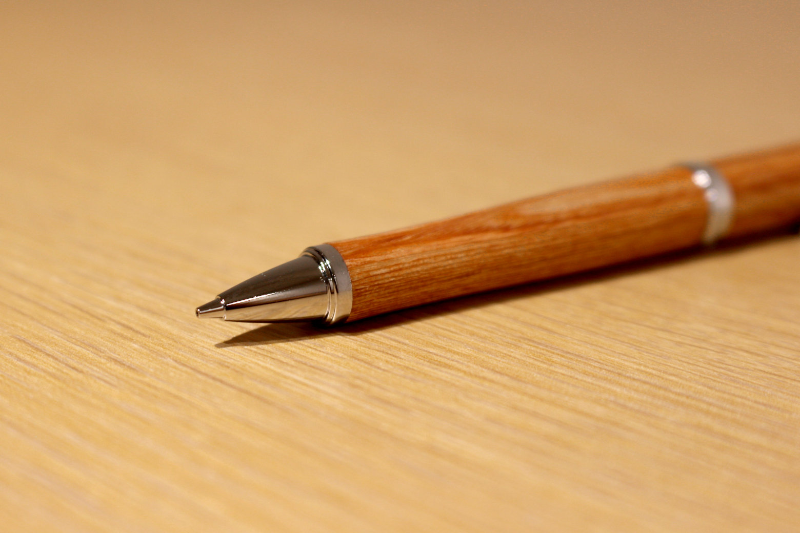 ほどよい重みと太めの軸で、しっかりとした書き心地の〈レグノ〉。 すべすべとした感触がよく手になじみ、心地よい質感を愉しめます。 あざやかな木目が美しいカバ材は、樹脂をしみこませた丈夫な素材。永く愛用いただける一本です。