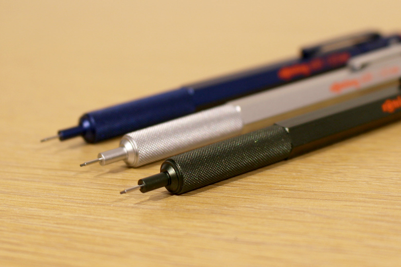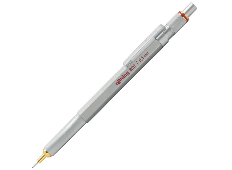 〈rOtring 800〉は、上記の〈600〉と同じくロットリングの代表アイテムです。 ペン先・ガイドパイプを内側に収納することができるのが大きな特長。ペンケースやポケットの中に入れても、ペン先が破損する心配がなくなります。 〈600〉と同じマットな質感とシンボリックな赤いリングですが、ペン先とノックパーツにゴールドのきらめきがプラスされ、より上質感あふれるビジュアルになっています。