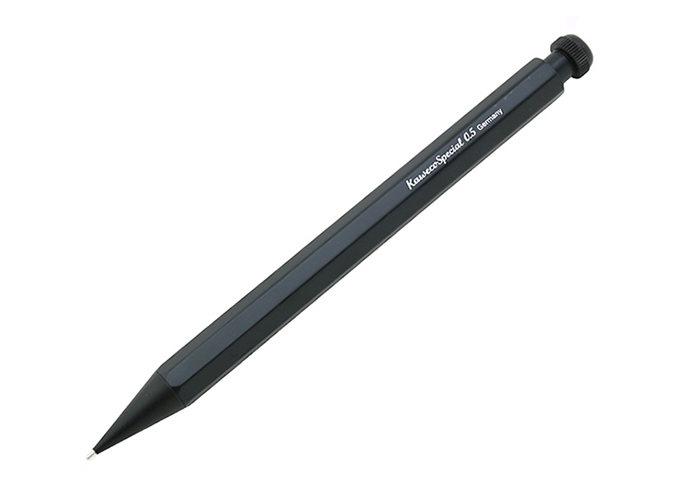 クラシカルかつユニークなデザインを生み出しつづけるドイツのブランド・カヴェコ。 1930年代の事務用筆記具をイメージしてデザインされたのが、〈スペシャル〉シリーズです。 マットブラックの八角軸はやや細身で、すべらかなアルミニウム製。心地よいフィット感です。 クリップはついていないので、書いているときにクリップが手に当たることがなくストレスフリー。 (別売の専用クリップがあります)