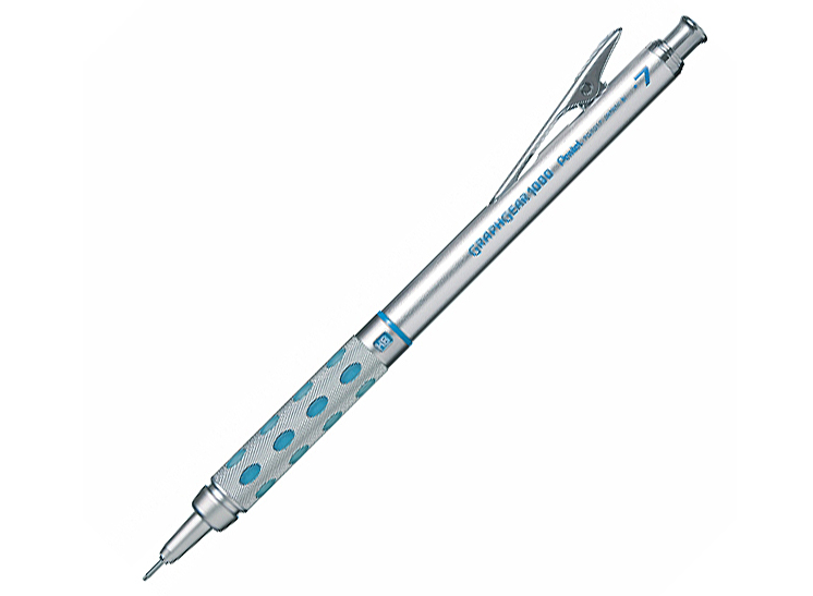 日本の文具メーカー・ぺんてるのロングセラー。 〈グラフギア1000〉は同じくぺんてるの〈グラフ1000〉より重みがある金属製タイプで、軽い力で書き続けられます。 グリップはローレット(溝)加工がされたアルミにゴムパーツを配し、滑りにくくなっています。 手に取りやすい価格と、自分にぴったりな字幅をえらべるバリエーションで、毎日いっしょに頑張る "相棒シャーペン" にぴったりです。