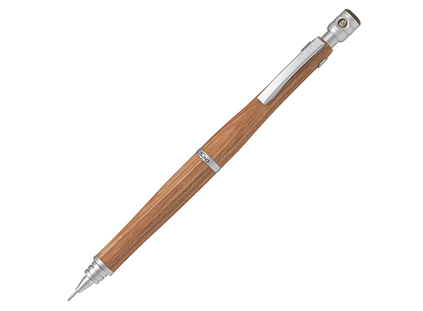 金属の軸が一般的な製図用シャープペンのなかでは少し珍しい、木軸のモデル。 手元が見やすい製図用ならではのペン先やぶれにくい低めの重心設計といった機能性と、温かみのある素材の魅力を兼ね備えています。 マットな質感の映えるダークなカラーから、木目がはっきりとあざやかな明るいカラーまで、全5色のラインアップです。